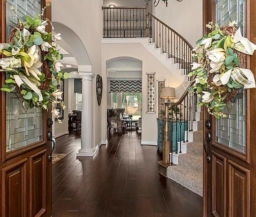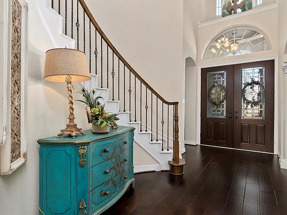 This home shows like a custom build & makes a statement with a gorgeous interior & exterior! Must be seen in person to appreciate its beauty. Gorgeous wood floors, art & furniture niches, tray ceilings, custom paint & crown molding. 2 story entry with chandelier & rotunda ceiling. 2 story family room with tons of windows, tray ceiling & niches. Huge kitchen with custom painted/distressed cabinets, stainless appliances, island, granite, double ovens, bar seating, butler's pantry & breakfast room. Dining room with niche, tray ceiling, double crown molding & gorgeous chandelier. Study with closet could be a 2nd bedroom down. Spacious master suite with sitting area. Luxurious master bath & large closet. Upstairs is a game room with kitchenette & balcony, a media room with multi-level seating, 3 bedrooms & 2 full baths. Balcony, covered patio & large backyard ready for a pool. Amazing community amenities. Zoned to new Grand Oaks High. This home is only available through 10-31-2019.