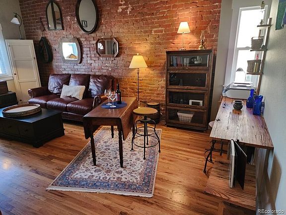 This unique Regis Row House offers an awesome Berkeley location, historic charm & move in ready condition. Perfect for a small family or as an income generating rental, taking advantage of proximity to Regis University. All rooms are partially furnished - some with lovely vintage furniture - including the kitchen which has dishes & glasses, cookware, brand new toaster/air fryer & coffee maker. Two bedrooms compliment a spacious Family Room w vaulted ceiling, ceiling fan, skylights, exposed brick accent wall, hardwood floors. Remodeled Kitchen features composite farm sink, tile floors & counters, newer stainless appliances, gas stove & portable island; spacious Laundry & Pantry storage room hides off the kitchen behind pocket door. An updated hall accessed full bath has new fixtures, tile floors & tub surround. The large enclosed, partially covered brick & concrete back patio areas include various patio furniture, has gate & garage access to private back-alley parking, as well as to the detached one car garage. Property is equipped with newer forced air furnace, central AC, electric water heater, updated electrical. Bonus storage space located in the large unfinished, in ground cellar / basement is perfect for seasonal storage or wine cellar & serves as the mechanical room for furnace and water heater; cellar access from the garage. Surrounded by established neighborhoods of new & original single-family homes, minutes to several lakes & parks, Regis University & Willis Case golf course. Unassuming from the outside, you will be completely smitten once you walk through this charming row house that’s only 5 minutes from the gentrified Tennyson area restaurants & shopping. This is a charming, unique property that is worth a serious look!