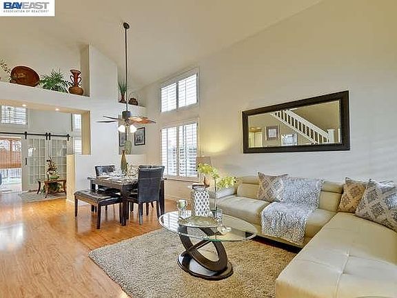 Stunning & Immaculate! Additional 202sq/ft High Ceiling Sunroom w/Permit; Bright Flr plan w/High Ceiling; Laminated Wood Flr Downstairs & Stairs; Plantation Shutters; Newly Remodeled Kitchen; Central A/C & Vacuum Sys; Security Alarm Sys; Enlarged 32' Driveway; Ez Access to 880; O.H. Sat & Sun 1-4pm
