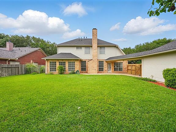 Meticulously maintained home on cul-de-sac lot, located in quiet Austin Meadow. Refrigerator and washer/dryer included. Beautiful hardwood floors, tile and carpet throughout. Study, formal dining and recently painted den with gaslog fireplace. Updated island kitchen with granite counters, custom painted cabinets and SS appliances opens to sunny breakfast. Master retreat with spa-like bath down; 3 spacious bedrooms & game room up with built-ins. Huge back yard with patio, sprinkler system and access to levee that acts as jogging or bike path. Zoned to exemplary sought-after schools: Colony Meadows Elementary, Fort Settlement Middle & Clements High. Close and convenient to everything: shopping, dining, relaxation and highway.