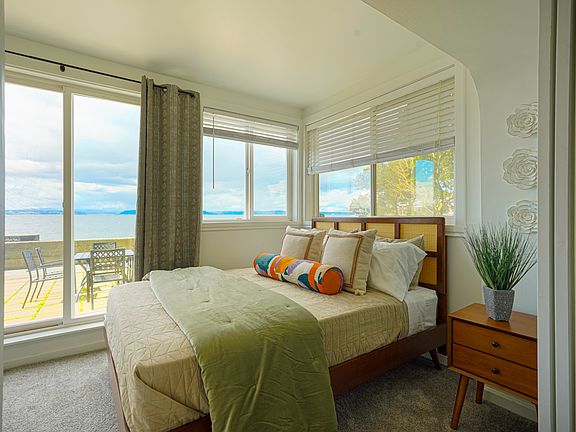 Experience waterfront living at its finest just steps from the shimmering water. Ideal for families or groups of friends to enjoy kayaking and paddle boarding. Watch the sun set behind the Olympic Mountains as you relax on the patio, feeling the crisp breeze from the Puget Sound. Retreat to two bedrooms, each with its own bathrooms. Your Gateway to unforgettable adventures awaits.