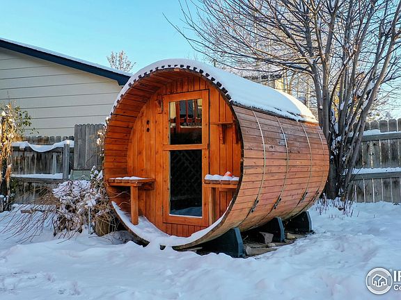 This spacious bi-level is ready for your personal touch! The two living spaces and open kitchen are great for entertaining. A deck from the kitchen leads you down to the expansive beautiful fenced backyard where you'll find a "hobbit" sauna, outdoor bar, fort, & separate garden space. There is plenty of storage and parking with an attached 2 car garage & a covered parking space off driveway. A bonus 10' x 20' shed with solar electricity and loft is included. No HOA and is close to The Olde Course, Cattail Creek, Mehaffey Park, Lake Loveland and more! This home is in need of some TLC and is priced in consideration of such.