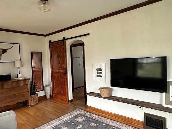 Welcome to this charming 2-bedroom starter home nestled at the end of a peaceful cul-de-sac, lovingly updated throughout, boasting tasteful colors!Situated on spacious 0.394-acre lot, this property provides ample space for outdoor activities, enhanced by the newly installed black chainlink fence providing added security. The updated kitchen features a new farmhouse sink and gas stove. Step into the inviting living room, adorned with quaint barn door slider adding character and charm. The home's practical layout includes a heated attic bonus area providing extra space for a home office and storage options, accessible via pull-down ladder from the stairway. Lower level, a great workshop area awaits, complete with a nice workbench and an extra shower. Conveniently located within walking distance of Erskine Elementary School, close proximity to grocery stores, restaurants, and medical facilities. 1 Year HSA Home Warranty included.