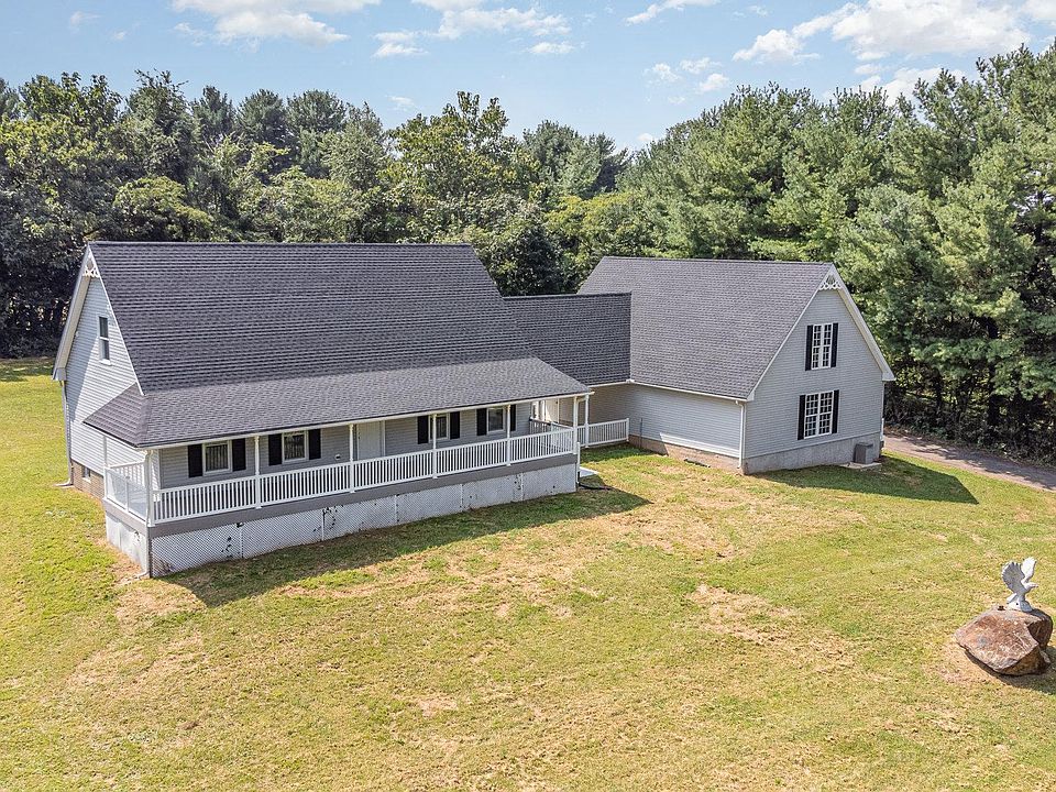 Welcome to this gorgeous, fully renovated 4 Bedroom, 3.5 bath single family home on 1.29 acres with massive detached 2 story garage! Main floor owners suite with private bath and walk in closet, fully finished basement, brand new HVAC and roof, fully modern kitchen, brand new everything! 3 beds, and two full modern baths on the top floor. Middle floor has a modern kitchen with granite counters, backsplash, custom cabinetry, brand new appliances, powder room, owners suite, formal dining room, and living room. The fully finished basement makes for a massive carpeted living/play/recreation area. The oversized detached garage is connected by a covered patio/walkway and has a second floor with tons of storage potential or the possibility to be converted to an office, or clubhouse. The large cleared yard is fully private and surrounded by mature trees. This house is a true gem, move in ready, fully modern and finished and waiting for you!