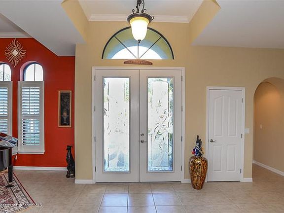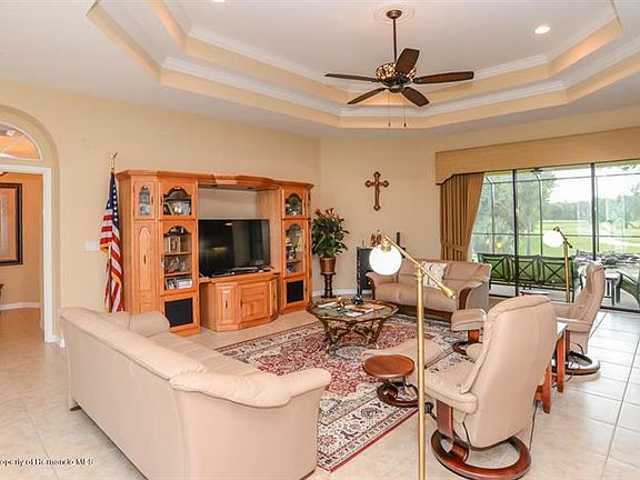 This Alexander Custom Home was built in 2015 is situated on the golf course in Hernando Oaks. Enter through the double doors into the large, open living room with tray ceilings. Stainless steel appliances and plenty of cupboard space in the kitchen. Large master, and bath with walk-in shower and garden tub. Entertain on the screened lanai with a summer kitchen, gorgeous view of the golf course. Also, improve your golf game on your own putting green! The yard includes a stone fire pit for the cooler Florida nights. Brick pavers lead to the garage with a spot for your golf cart. Call for your private showing!