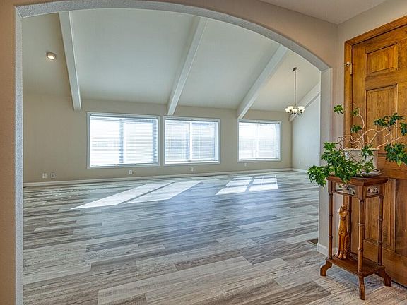If you are looking for a spacious and luxurious home in the charming south suburbs of Klamath Falls, look no further than this massive 4 bedroom, 3 bathroom, 3,648 sq ft custom built home. This home features a living room with high ceilings and a gas fire place, a gourmet kitchen with stainless steel appliances, an island, and two primary suites. The upstairs primary suite includes a spacious walk in closet, sauna, and private restroom with a jetted tub and separate shower. The downstairs primary suite features a large closet and restroom with a tile shower. One upstairs bedroom has a separate entrance assessable from the garage. There is storage galore! Each floor has its own heating and air conditioning, upstairs furnace purchased in summer of 2023, newly installed Tuffcore laminate flooring throughout, new concrete siding within the last five years, and to many upgrades to list. The uniqueness and beauty of this home cannot be expressed without seeing it for yourself.