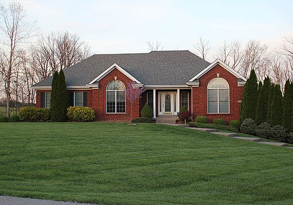 Pending, accepting backup offers. For sale by owner 502-558-8502. Settle in South Oldham Co prior to the next school year in award-winning Oldham Co schools. Brick split bedroom, full walkout ranch in coveted Heritage Place Subdivision in the Camden Station/South Oldham School district. Perfect Oldham County family neighborhood. Private 1 acre lot with no neighbors behind. Sports enthusiasts will enjoy the chipping/putting green, professional volleyball system (detachable posts) and large basketball court. Open floorplan with hardwood flooring, vaulted family room with new carpet installed 1 year ago, custom built-in, gas log fireplace, surround sound. Master bedroom with his and her closets and master bath on one side of the house, second and third bedrooms sit opposite side with a shared full bathroom. Sip morning coffee or entertain on the recent addition covered deck with cable connection/TV mount (wired for in-ceiling speakers). Concrete patio beneath with swing and wired for hot tub. Full finished walkout basement features family room with custom wet bar, mini-fridge, custom built-ins, cable tv & mounts for two TV’s, surround sound and additional gas log fireplace; full bath with tiled shower and large fourth bedroom with plenty of closet space. Large 2.5 car garage with extra workshop space and storage room for toys, bikes, mowers, etc. Outdoor lighting on time clock and home security system. All appliances (except garage refrigerator) remain.
