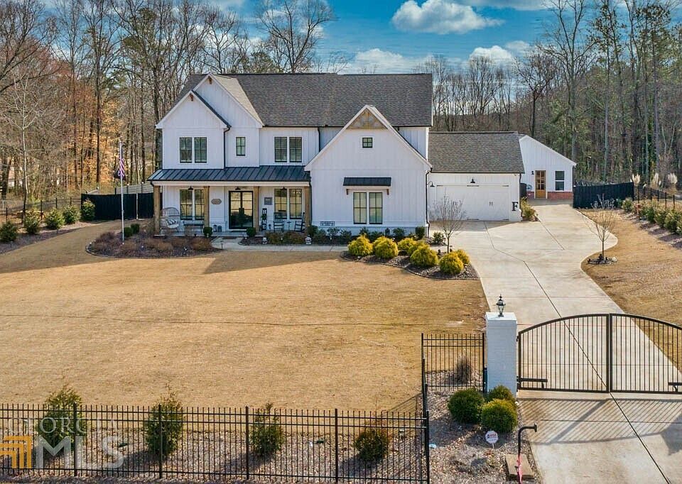 Property priced BELOW appraised value! This breathtaking 4,348 sqft, 4 car garage farmhouse boasts updates beyond builder finishes! Located in the award winning Buford City School District, this home is situated on a .89 level lot, fully fenced with an automatic gate. The board and batten facade and rocking chair front porch with gorgeous wood beams exude curb appeal. Upon entry, you will fall in love with the new wood flooring, shiplap wall accents, and custom wood accented ceilings. The kitchen features a large island with ample bar seating and is open to the living room. The living room's coffered ceilings, brick fireplace, and built-in shelves invite you to relax or entertain in luxury. Also off of the kitchen, the large sitting room offers a stone fireplace and a handsome wood beamed ceiling with large accordion doors that open right up to the pool. The butler's pantry has built-in wine racks and is perfect when hosting guests! The main level also offers a guest bedroom and en suite with a stunning walk-in shower. Upstairs, the oversized owner's suite feels like your own private retreat with en suite and a large walk-in closet. The spa-like en suite entices you to soak in the stand-alone soaking tub. You will also find three sizable secondary bedrooms upstairs, two which share a large jack and jill bathroom, and one with it's own full bath. Step out into your screened-in porch and enjoy all of Georgia's seasons by curling up by the fireplace or cooling off under the fans. You will be mesmerized by the attention to detail in all of the recent owners' upgrades and additions. The breathtaking custom pool and 1,200 heated sqft pool house are sure to set a new standard for "staycation". Beyond the pool, the yard has been leveled and provides space perfect for a trampoline or a game of corn hole. Whether you're entertaining or unwinding, this home has everything to offer! Buyer may also receive up to $15,000 or 1.2% of the loan amount toward closing costs when using partner lender, Rachel Benton with HomeStar O: 470-443-9810 D:678-699-1299
