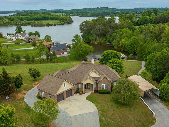 LAKE LIVING AT ITS FINEST & JUST IN TIME FOR SUMMER! This beautifully maintained lake home has it all - 28 ft boat dock with 12,000 lb lift, 12 x 12 screened porch, huge Trex deck with year-round lake view, 2 car attached garage on main level, 28 X 30 detached garage that is insulated and has 100 amp electrical service, basement garage, storage shed & RV carport. Inside boasts engineered hardwood flooring, cathedral ceiling great room with fireplace & oversized windows with lakeview, large gourmet kitchen with granite, tile backsplash & stainless appliances (refrigerator conveys), airfryer range & open dining area. Spacious owner's suite has a double trey ceiling, lake view, large tile walk-in shower, separate vanities, bidet, walk-in closet with attic access, & soaker tub. Guest bedroom, laundry with storage & utility sink & mudroom are also on the main level. Downstairs has a MASSIVE rec room with 10 ft ceilings, 2 additional rooms with ample closet space, full bath with walk-in shower, partially finished storage/utility room & a large garage/workshop! Additional features: bonus room above main level garage, well water, gravel path that leads to the dock, surround sound, walk-in pantry & more! This RARE FIND is the ULTIMATE destination for entertaining with NEARLY 4 ACRES!