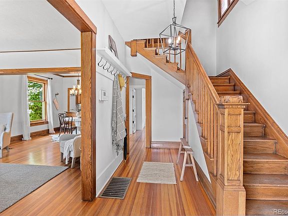 History has been beautifully preserved in this tastefully updated two-story Victorian home in the coveted Sunnyside neighborhood. Located on a quiet and charming block, this home sits handsomely on the west side of the street. A large covered front porch is the perfect place to enjoy the neighborhood. Inside the entryway, a gorgeous wood staircase and original wood details warmly welcome you to a bright and open floor plan. A gas fireplace and large picture window at the front of the home offer a peaceful and cozy space to relax, while wood floors and high ceilings throughout give this home an airy feel. The kitchen has been tastefully updated with stainless appliances, granite and ample cabinet space. A large bedroom with a built-in murphy bed and a full bathroom round out the main level. Upstairs, you’ll find two bedrooms with generous closets including a large primary bedroom, with a spacious seating area, built-in closets and a private, West facing balcony. The basement is finished for additional living space, an office, home gym or flex space. Large laundry room with additional storage. A private backyard with a covered concrete patio offers space for both lounging and dining. Mature Trees, lush landscaping, and fully fenced in. Large storage shed for all of your equipment. Walkable to The Wolf’s Tailor, Cherry Bean, Huckleberry Roasters, Bacon Social House, El Jefe, Lohi, LoDo, and more. Convenient access to I70, Park Ave, and I25. Don’t miss your opportunity to reside in one of Denver’s favorite neighborhoods.