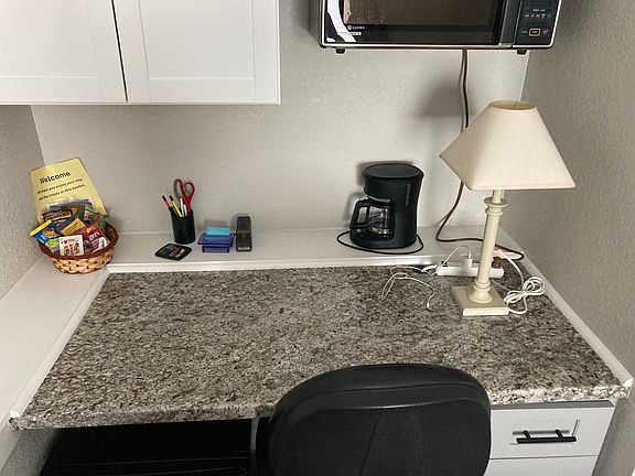 - The kitchenette (NOT a full kitchen. NO stove. NO oven) is charmingly petite think "microwave gourmet" rather than "Thanksgiving dinner."