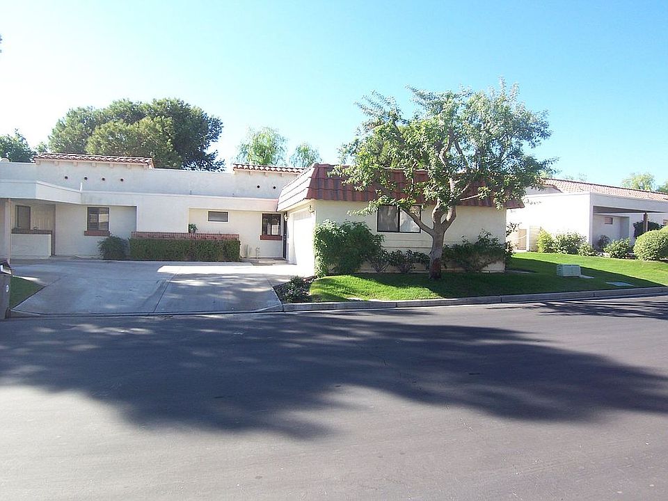 Paradise awaits you! This SOUTH FACING Vintage model has two MASTER SUITES with direct patio access, each with its own bathroom and walk-in closet separated by the main living area for privacy. Located on a lovely greenbelt safe from the golf ball zone. Upgraded to include an ATTACHED GARAGE. Offered turnkey FURNISHED. Over 20 community pools and more than a dozen tennis courts available for your enjoyment. Very affordable golf memberships available or several pay as you play options to choose from. HOA's Include Front/Rear Landscaping, Clubhouse, Tennis, Pools/Spas, Cable & Trash Service.