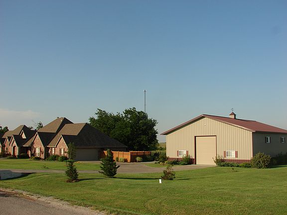 This home and hanger in airpark community is a must see, Aviator or not. Home features open floor plan, 3 bedrooms, 2.5 baths, 2 living areas breakfast nook, formal dining, safe room, & 2 car side entry garage. Island kitchen features granite counter tops, pantry, stainless steel appliances including built-in oven & microwave/convention oven. Large master includes walk-in closet, bath with private bath with tub, double vanities, and separate shower. Living room fireplace, large 2nd living area could be game room - features built-in bookcases & entertainment area. Laundry room with sink, & security system. Decorative fenced backyard with large covered back patio and fire pit. All on 2 acre lot. 48’x60’ Morton Hanger with apartment. Hanger includes 40’ Hi-Fold door to runway, oversized entrance door for RV storage, great storage loft over apartment, washer & dryer hookups. Apartment feature living/dining area, kitchen, & full bath.