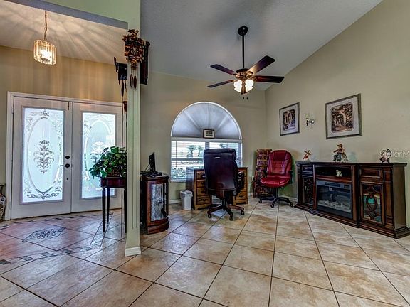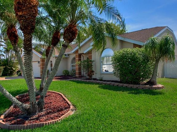 NEW PRICE! This is the one you've been waiting for! Don't miss the opportunity to own this meticulously maintained and updated 3 bedroom 2 bath home with fenced yard, large deck and built in tiki bar. The oversized 2 car garage with epoxy floors has an extra area that's perfect for your workbench or additional storage and the overhead garage door has been updated for hurricane protection. A newer steel garage side entry door was recently installed. High ceilings, numerous windows and doors add loads of natural light throughout the home. Sliding glass doors can be opened to allow the warm Florida breezes to flow through and bring the outdoors in. The family room with wood burning fireplace is a great place to relax. The chef of the family will love the luxurious granite countertop prep space and stainless appliances including a double oven in the kitchen. The walk in pantry has convenient lighted pull out shelving and the breakfast bar is great for casual dining or can be used as a buffet while entertaining. Sip your morning coffee in the large breakfast nook overlooking the massive deck and over-sized covered lanai. The owner's suite is painted in neutral hues and features French doors to the patio area and an en suite bathroom that exudes luxury. The master bath boasts dual vanities, a huge walk-in closet with designer shelving and an enormous tile accented shower with dual shower heads giving this space a truly spa like feel. Roomy bedrooms two and three are smartly placed on the opposite side of the home allowing privacy to all. The guest bath has lots of cabinet and closet storage and the combination tub/shower and commode are placed in a separate room with a pocket door. The guest bath also has an exterior door leading to the oversized lanai and deck making it perfect for outdoor entertaining. The spacious laundry room has plenty of storage shelving and a large utility sink. The storage shed in the rear yard gives you additional room for your gardening tools. The roof is 7 years young. The A/C has a 2 year prepaid service contract w/Quality Control Air and the ducts and vents were thoroughly cleaned in 2019 and a UV light was installed. A security camera system on the front of the home and special window glass treatment gives you peace of mind and privacy. Fairfax is a sought after community close to shopping, dining, beaches and entertainment venues the Suncoast is famous for. Priced to sell so don't miss out, schedule your private showing today!