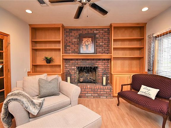 Custom Home so well maintained and shows it's owner pride. This home screams buy me from the moment you drive up. Great slab w/extra concrete, a lifetime metal roof, 10 ft ceilings, 3 yr HVAC unit, & less than 5 yr hot water heater. The kitchen offers an abundance of counter space and custom cabinetry, walk-in pantry, brand new microwave, smooth stove top, double-wall oven, & refrigerator remains. The living area is centered around beautiful built-in cabinetry and a real brick fireplace w/gas logs. The owner's bedroom has two closets, one being a large walk-in space. The on-suite has a new step-in shower w/seat & double vanities. All doors & hallways are wheelchair accessible as well. There are two additional bedrooms & a hall bath with tub/shower combo. On the exterior of the home you get a huge, covered back porch w/insulated ceiling. There is an immaculate workshop with electric, and gorgeous flowering plants and trees. Eligible for 100% RD financing. Great Home.