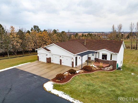 Beautiful RANCH STYLE home with MAIN LEVEL LAUNDRY ROOM, 4 bedrooms, 3 updated bathrooms and WALKOUT BASEMENT! Triple attached garage and a 30x45 SHOP. Cathedral ceiling over the kitchen, dining and living room. Patio door off the dining room to a large MAINTENANCE FREE DECK on the shaded side of the house. Oak kitchen cabinets with tile backslash, newer appliances including a dual oven range and WALK-IN CORNER PANTRY. Walkout lower level has a spacious family room with patio door to a large concrete patio and walkway to an awesome fire pit area, two large bedrooms and full updated bathroom. The HEATED SHOP has workbench and storage shelving. MATURE TREES and BUSHES border the yard.