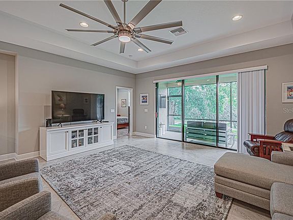 What a RARE opportunity!! There's no other place in this area that offers RESORT STYLE LIVING, newer villas & are maintenance-free. This 2019 MOVE-IN Villa, is better than new with all its UPGRADES & FEATURES! STATE-OF-THE-ART kitchen features dual cooking ovens, GRANITE counter tops with an oversized kitchen island, STAINLESS STEEL appliances, special drawers for pots & pans, closet pantry, 3 additional pendant lighting & bar seating. OPEN FLOOR PLAN allows for dining table right off the kitchen bar or in the FLEX ROOM (where it is currently). This Flex room can be used as an OFFICE AREA or FORMAL DINING. Living room features a colossal fan, trey ceiling & triple SLIDING doors overlooking an upgraded SCREEN-IN LANAI with PAVERS & dual fans. You can even hear the TRANQUILITY of Terralargo's Fountain while relaxing on your back Lanai!! Master Bedroom has a trey ceiling & EN SUITE bathroom with his & her sinks, walk in closet, private toilet stall & built-in MAKEUP VANITY. ADDITIONALLY, this house has been equipped with a BUILT-IN GENERATOR TRANSFER SWITCH with an extra heavy duty 25" power extender cord & includes a DuroMAX portable gas electric start GENERATOR that can run up to 13,000 watts! Garage also has EPOXY flooring. Laundry room comes with washer, dryer & UTILITY SINK. There's even extra paint, roof tiles & AC filters for a year! WOW!! Villa is conveniently located minutes away from I-4, commons shopping areas & restaurants too. The attractive community of Terralargo offers resort styled amenities which includes a Clubhouse, fitness center, covered play area, zero-entry pool and swimming lanes, spa/hot tub, gazebo, and tennis/basketball/pickleball courts. Don't miss out on this BEAUTIFUL move-in ready home! OFFERING $3,000 NOW IN CLOSING COST WITH FULL OFFER!! Call & schedule your private showing today!!