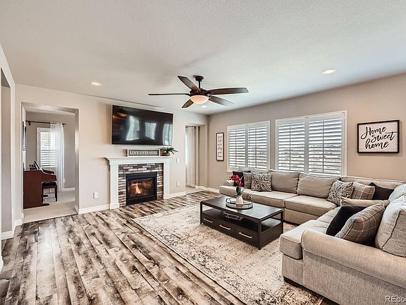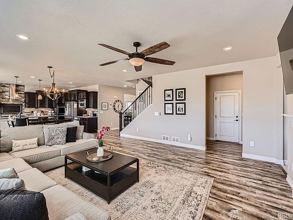 Absolutely stunning home in Castle Rock! This 4 bedroom 4 bathroom home has been meticulously maintained and cared for with upgrades galore! The open floorplan is perfect for entertaining! Oversized kitchen with 42' cabinets, stainless steel appliances, granite countertops and a large pantry! All 4 bedrooms are on the upper floor along with the laundry room and a cozy loft! Brand new carpet! The outside is where this home really shines! Breathtaking views of open space, a fire pit, water feature, outdoor BBQ, hot tub and newly installed artificial grass!