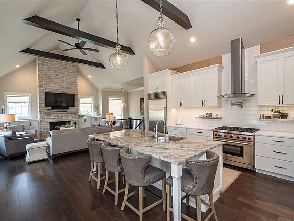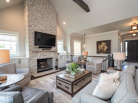 Every detail was meticulously thought out in this STUNNING, CUSTOM built Ranch located in Walsh Pointe. Just 2 years new, this home features OPEN flr plan w/ abundance of upgrades including flr to ceiling stone wall, gas lite frpl, vaulted w/ exposed beams ceiling, & custom built-ins. Enjoy a Chef's Kitchen w/ 36' Wolf gas range, pot filler, ice maker in serving bar, Sub Zero fridge, & LARGE walk-in pantry. Sliding doors from Informal Dining to deck overlooking patio & perfectly maintained yard. Master BR boasts cathedral ceiling w/ crown, & barndoor leads to Spa inspired Bath w/ quartz counters, dual vanities, tiled shower & soaker tub. Main level Den/Office includes a built in Murphy bed & Laundry Rm w/ granite counters & utility sink. Entertain in this FABULOUS finished, daylight bsmt featuring wet bar & full fridge, craft rm, en suite w/ secret office/playrm, & addt full BA. 4 car, HEATED gar! IMPRESSIVE home just steps away from Crow Valley GC, dining, shopping & I74/80