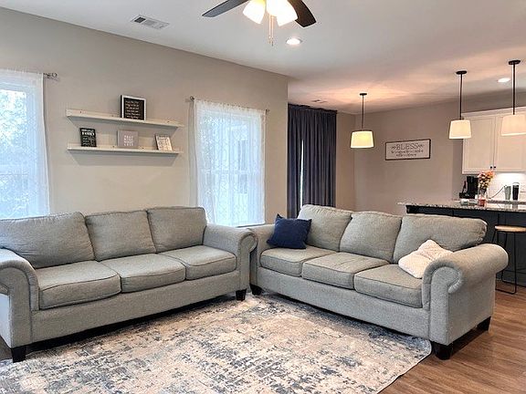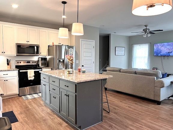 Wow this home is close to everything! All of the updated features you are looking for in a home. Open floorplan design allows easy flow from the dining area, kitchen and large living space. The kitchen has a beautiful island with granite countertops for entertaining and family time. Welcoming foyer with half bath and garage access as well as nook for storage. LVP flooring downstairs and wood floors on the stairs for easy care. Upstairs is carpeted with three spacious bedrooms and loft space. The master suite is HUGE with ample room for large furniture with access to the private master bath and walk in closet.