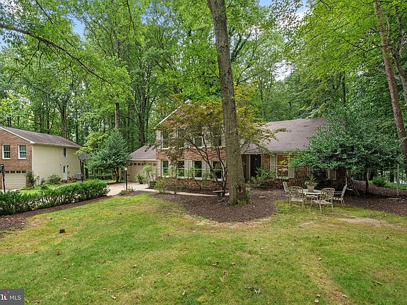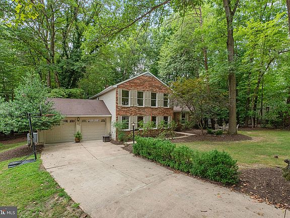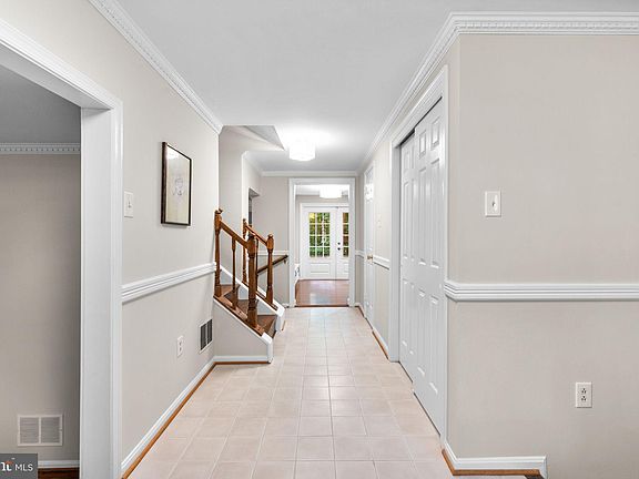 Beautifully remodeled Colonial in highly sought-after Dorsey Hall, offering 3,038 square feet with 4 bedrooms, 2 full baths, 1 half bath, and a 2-car garage. Nestled on a lush, landscaped lot, the home welcomes you with a front entry adorned with charming floral glass accents. Inside, the foyer features an elegant chair rail detailing and crown molding. To the right, rich hardwood floors set a warm, welcoming tone in the spacious living room. A partial railing defines the formal dining room, which flows into the inviting kitchen. Here, stainless steel appliances—including a wine refrigerator and double ovens—granite countertops, ample cabinetry with open shelving and built-in wine racks, and a vibrant green tile backsplash create a stylish, functional space. A cozy breakfast nook with a built-in bench seat offers views into the family room through a pass-through window, as well as exterior access. A powder room completes this level. Step down to the family room, where a wood-burning fireplace, built-in bookcases, and hardwood floors set the stage for comfortable gatherings. From here, access the stunning four-season sunroom with cathedral ceilings, skylights, exposed brick, and deck access—perfect for enjoying the outdoors year-round. The home’s centerpiece is the expansive recreation room, highlighted by gleaming hardwood floors and a striking wall of custom built-in bookcases with cabinetry. A laundry room is conveniently located in the hallway. Upstairs, you’ll find three carpeted bedrooms and two full baths, including the primary suite with a walk-in closet and a beautifully renovated private bath.