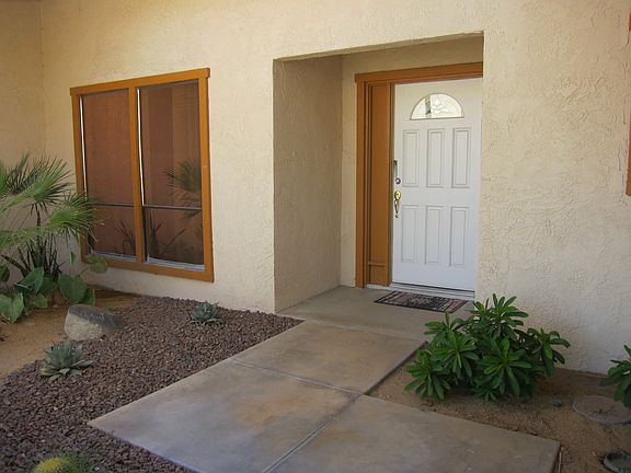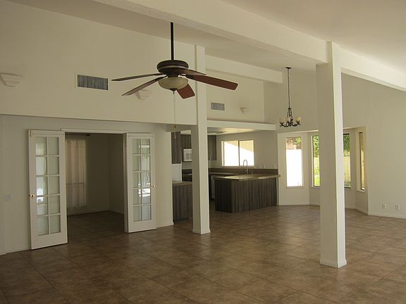 Quiet cul-de-sac home in Palm Desert's Sagewood neighborhood. This three bedroom, two bathroom home features tile flooring, cathedral ceilings with fans, renovated kitchen, and a master suite with a dual basin vanity and walk in closet. There is a large patio in the backyard, as well as a swimming pool. Den/office located off of the living room. Two car attached garage, laundry room with gas dryer connection. Small pet OK with owner's approval and additional deposit. Pool and landscaping maintenance is included at $1695 per month on an annual lease. Please call the property manager at 760-895-1430 for more information or to schedule an appointment.