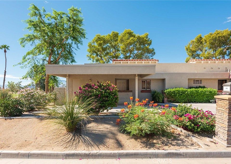 Welcome to your dream retreat in the picturesque Palm Desert Resort Country Club. This exquisite two-bedroom, one-bathroom, condo has undergone a stunning transformation, boasting a remodeled kitchen and bath. this spacious unit offers you the ultimate in comfort and versatility. Step inside, and you'll immediately notice the attention to detail that went into every aspect of this home. The remodeled kitchen is a chef's delight, featuring granite countertops, custom cabinetry, and stainless steel refrigerator. Whether you're hosting a dinner party or preparing a quiet meal for yourself, this kitchen is a true centerpiece. The master bedroom is a sanctuary of relaxation, complete with new windows, offering convenience and luxury. You'll love unwinding in your private oasis after a day of exploring all that Palm Desert has to offer. One of the standout features of this condo is its prime location, just a stone's throw away from the clubhouse and its world-class amenities. Enjoy a round of golf on the championship golf course, a friendly game of tennis or pickleball on the well-maintained courts, and experience the largest private pickleball courts in the Coachella Valley. With 20 pools & spas, bocce ball, cafe & clubhouse with entertainment, you'll never want to leave. For sports enthusiasts, the nearby Acrisure Arena offers exciting entertainment and events. When you're in the mood for some retail therapy or a gourmet meal, the condo's proximity to El Paseo, known as the "Rodeo Drive of the Desert," ensures that you're never far from upscale shopping and dining experiences. And with easy access to the freeway, you can effortlessly explore the surrounding beauty and attractions of the Palm Springs area. This floor plan ensures a seamless flow throughout the home, and with laundry facilities conveniently located outside, daily chores become a breeze. Imagine yourself sipping a refreshing beverage on the patio, surrounded by breathtaking desert landscapes and serene views. This condo in the Palm Desert Resort Country Club offers the ideal blend of luxury, convenience, and resort-style living. Whether you seek an active lifestyle or a peaceful sanctuary to call your own, this property fulfills every desire. Embrace the desert lifestyle and make this exceptional condo your very own oasis in Palm Desert. Short term rentals are allowed.