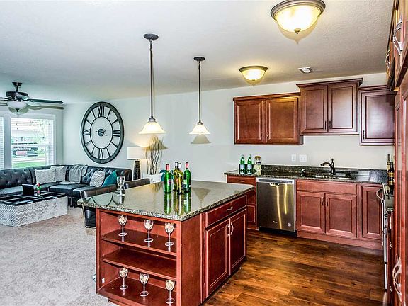 • Kitchen Features: Wood Cabinets, Island, Marble/Granite/Slate