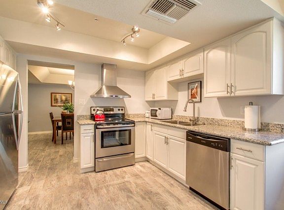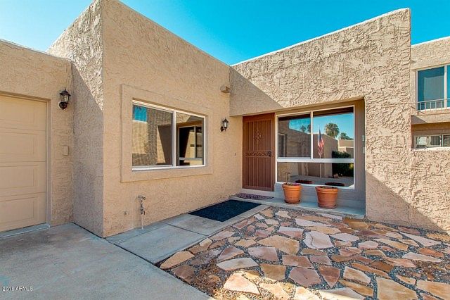Move In Ready, Lock and Leave living at its' best. SINGLE STORY 2 bed 2 bath beautifully remodeled in 2015 patio home w/2 car garage in a highly desirable gated Las Haciendas. This home shows much larger than stated square footage. New granite counters in kitchen and bathrooms. All new stainless appliances. New porcelain plank flooring throughout the home along with new carpet in the bedrooms. New roof and water heater. New remote controlled ceiling fans. New light fixtures and plumbing fixtures. New windows, doors, and sliding patio door with all new hardware. New ceilings with everything freshly painted throughout. Full size washer, dryer hookups. This home backs up to a greenbelt and HOA will allow a direct gate. The garage storage room and shelving help make this home complete!
