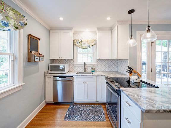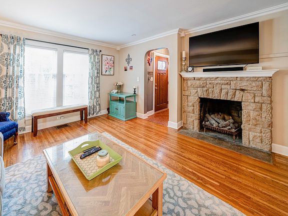 You will fall in love with this CHARMING St. Matthews Cape Cod in an amazing location! This updated 3 bed/2 full bath bedford stone home is move-in ready and has been lovingly updated from top to bottom! The first level features original hardwood flooring throughout, arched openings, and an OPEN floor plan. The living room area boasts a timless stone fireplace and flows into the sizable dining area with double doors that open up to a spacious deck with string lights. Perfect for entertaining! Flow seamlessly into the beautifully updated kitchen with Quartzite countertops and stainless steel appliances. Two nice sized bedrooms and full bath are located on the first floor. Upstairs is a fully renovated Owners Suite with his-and-hers vanities, large shower, and closet.