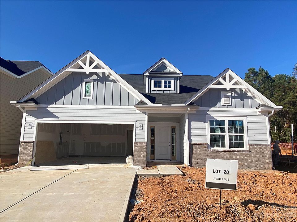 Welcome to our Craftsman-style 1.5-story home, with painted siding & brick accents, plus a rear covered porch. This is a flat homesite that backs up to the tree-save community perimeter. Flex room w/ French doors. Kitchen: Quartz counters, white and light grey painted cabinets, GE SS Cafe appliances with gas range and chimney extraction hood that vents outside, soap dispenser, double trash pullout, Moel Align matte black faucet, large stainless steel single bowl under-mount sink. Premier Suite includes a tray ceiling. Premier Bath has quartz counters, white cabinets, large tiled shower with semi-frameless surround, and tile floors. Family room includes gas fireplace and media cabinet with shelves. Upstairs is a rec room, secondary bedroom, full bath and attic storage. Hardwoods are throughout most of the first floor, with tile in full baths and laundry. Stairs have oak treads & square rails. Secondary baths also include quartz counters & white or light grey painted cabinets.