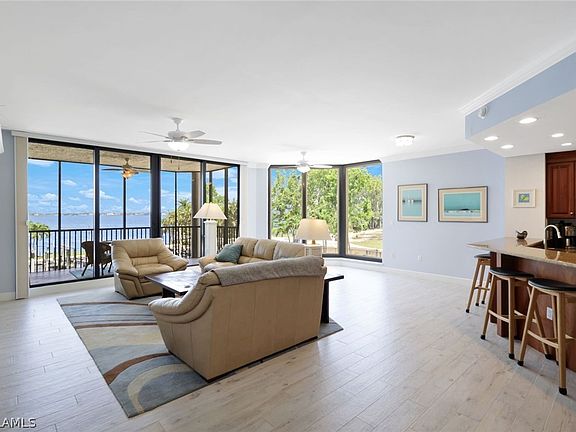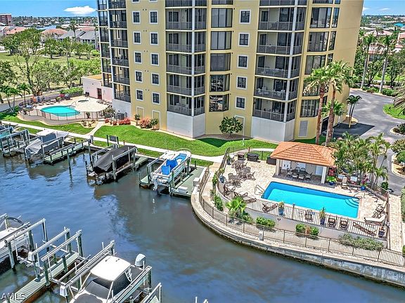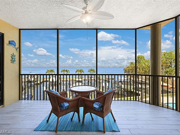 Right now you have an incredible opportunity to own a Riverfront Condo in one of the most exclusive buildings on the River for a great value. Our unit is the only RIVERFRONT one left in this HIGH DEMAND luxury condominium building and ours is priced to sell. This unit is not a ground floor unit. The first floor is very elevated and this building had no flooding and very minimal Hurricane Ian damage (only the main entry door to the building and some roof sheets and porch screens and everything has been remediated and fixed as good as new). You just have to bring your luggage and move into this TURNKEY condo-home with lots of square footage and RARE sweeping Million Dollar Riverfront view overlooking The Great Caloosa River & private marina where dolphin & manatee stop by. Take in the serene view of passing boats. Witness amazing sunrises & moonlights over the river on front. Pet Friendly condo home heated pool & spa, assigned garage secured parking, deluxe in unit laundry w/sink & cabinets. Automated blinds and plantation shutters for maximum privacy. You’ll find it easy to enjoy your amenities on the same floor: clubhouse w/billiards, fitness center, club kitchen for parties, private massage room, secured temp controlled storage w/work bench area. The oversized Primary Suite has Miami Dade rated (the best you money can buy) hurricane impact sliding door and glass all around. Relax on your private screened lanai, enjoy plenty of closet space in your walk-in closet, plus 2 linen closets, dual sink & vanity, jacuzzi tub, shower. Split Floor Plan offers private guest suite with pocket doors for ultimate privacy with 2 bedrooms & tub shower bath. Tens of Thousands invested upgrading tile floors throughout NO CARPET Anywhere! Steps to pet friendly Jaycee Park for easy River view stroll s and picnics. The best dining, shopping, medical & dental a stones throw away. Private Dock w/Lift, water & electric also available For Sale. This has it all make your private showing appointment today!