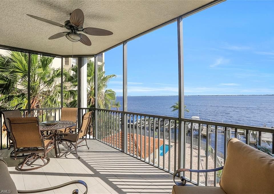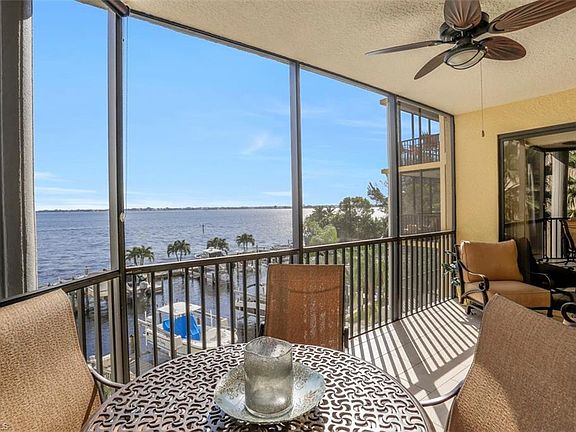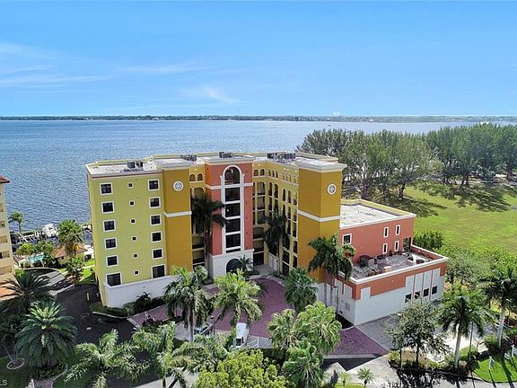 Paradise awaits you in SW Florida as you wake up every morning to the spectacular sunrise over the Caloosahatchee River,which leads you to the Gulf of Mexico-the ultimate lifestyle in Florida living. A boater's dream comes true, with your own private marina and available deeded dock and boat lift. Enjoy dining on your lanai and the ever changing river-the million dollar view!This unique well,appointed open floor plan offers 9ft+ceilings,3 bedrooms,2 bathrooms,and a multitude of upgrades:granite counter tops,beautiful tiled floors,fully equipped appliance package,luxurious master suite with whirlpool tub and spacious separate shower.Relax in the heated pool and spa,and take advantage of the fully equipped amenity center,billiard table,TV's,work out room and air conditioned storage area. Secure,gated under building parking is a plus.Jaycee park provides walking paths and green space at your door step.Restaurants,on and off the water,are close by as well as shopping.We have the Florida lifestyle you are looking for and the view you have been dreaming of!Schedule a private showing this one won't last!