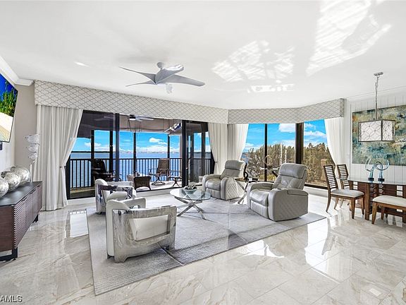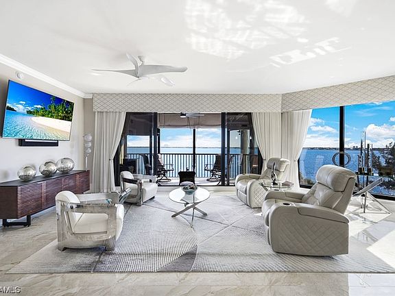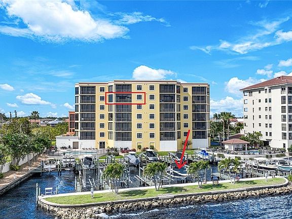 RIVEFRONT CONDO with BOAT DOCK & LIFT INCLUDED! Completely Remodeled luxury condo overlooking miles or waterfrontage in all directions and boats going by in the distance. Featuring 3 beds 2 baths & expansive screened in lanai. high-end top to bottom modern renovation. Stunning tile flooring, modern color palette, updated lighting/fans & a wall of windows & sliders overlooking the River. Kitchen has been updated with beautiful cabinetry, Quartz counters & KitchenAid appliances with bar top seating & open to the living room. Waterfront master suite with shiplap feature wall. Master bath has been updated with quartz counters, walk-in shower, jetted tub & chandelier. Impact Windows & Sliders for safety and security. Step out into the patio & watch the sunrise over miles of water, enjoy your favorite drink & unwind in paradise. BOATERS rare DIRECT GULF ACCESS CONDO with dock & lift included – open water in a minute. Enjoy panoramic water views & sunsets from the 5th floor, Dock w/ Lift Included & a high-end modern top to bottom renovation. Unlike other complexes, these docks are protected by the jetty ensuring your boat is protected. Parkside at the Rivers is a small 26 owner complex ensuring privacy, security, and a quiet setting. This is a pet friendly community, rare for condos! Amenities include heated pool, spa, BBQ, Spa Room, Social Room, Gym & storage area for bikes, tools, boat equipment. Undercover parking garage for owners & Secure lobby entry.