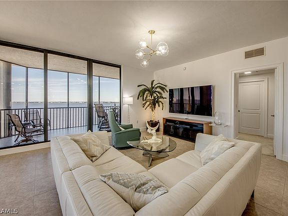 Elevate your life! Indulge in the ultimate waterfront lifestyle in this penthouse condo. From the moment you enter this top floor condo you’ll be captivated by the breathtaking view of the Caloosahatchee River. Parkside at the Rivers Condo has only 26 owners in this quiet complex. Enjoy your morning coffee as the sun rises, watch dolphin and manatee play, boaters and kayakers and the most incredible lightning shows during the summer rain showers. Invite your friends to the New Years Eve and 4th of July watch parties at your place offering a stunning parade of lights and fireworks. Penthouse units enjoy panoramic views all while enjoying the quiet and privacy of being situated on the top floor. You’ll love the peace of mind that comes with the secured building access, gated parking garage. As you step inside, prepare to be captivated by the irresistible warmth and welcoming ambiance that envelops you. Boasting expansive floor-to-ceiling impact glass windows and doors, you’ll love the stunning views and natural light. This pristine condo is immaculate and has been maintained in like-new condition that is sure to impress. The floorplan seemlessly flows and gives privacy to the master and guest suites. The master is arranged to enjoy river views from sunrise to sunset. The master closet is completely organized with closet cabinets that include an ironing board and built in hamper and safe. A large walk in shower and jetted soaker tub await you in the master bathroom plus dual sinks and vanities. Your guests will enjoy their own wing separated by pocket doors for privacy. The guest area has two bedrooms and an adjoining guest bathroom with amazing cityscape views. At the heart of this lifestyle, the kitchen stands as a dazzling centerpiece, boasting remarkable storage solutions, state-of-the-art Monogram appliances, elegant 42” maple cabinets with crown molding, luxurious granite countertops and bespoke custom lighting. A captivating fire and ice fireplace casts its shimmering glow over your dining table, creating an enchanting ambiance that elevates every mealtime experience. A large laundry room offers abundant storage, wash tub and front loading washer and dryer. The tiled balcony is large enough to create a dining and sitting arrangement for your enjoyment. Building staggered design offers balcony privacy. Boaters take note, this complex enjoys a calm water, sheltered marina that allows boat lifts. Docks are available for purchase or lease. Parking is assigned plus an annual lottery for additional garage parking space. Amenities include: Heated pool and spa, gathering/event room for private parties, billiards, fitness, massage spa, bike storage, BBQ and secure 6’x8’ air conditioned storage. Walk next door to Jaycee Park for picnics, walks in the park, play area, car shows, plant sales, movies in the park and year round events. Parkside Condo is pet friendly. Discover Cape Coral’s finest high end condo on the river! Call today!
