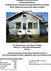 Single Family Home for sale by owner in Fort Wayne, IN 46806. Wholesale Deal4 Home Package -$17K/House Purchase Price $68K Lots of upside with very little work to be done to be rent ready. Mechanicals are functional or upgraded where needed. Pricing is only good for the entire package. Click on link to each home. Email if interested JAYR478@aol.com https://docs.google.com/leaf?id=0B8V7jXZ3b6-qZTQ4MDI0M2UtNjVkYi00MTVhLWE5YmYtYTRlMTdjMTdlMmIw&sort=name&layout=list&pid=0B8V7jXZ3b6-qMTU4YTU1NTAtYzNkOC00ZTdiLTlmZjUtZWYxMjJiZDlkYmM2 https://docs.google.com/leaf?id=0B8V7jXZ3b6-qNmM5YjNjMzktNGE5NC00ZWMzLWFkMGItYzA4Zjg4MzgxNWE1&sort=name&layout=list&pid=0B8V7jXZ3b6-qMTU4YTU1NTAtYzNkOC00ZTdiLTlmZjUtZWYxMjJiZDlkYmM2&cindex=1 https://docs.google.com/leaf?id=0B8V7jXZ3b6-qY2Y0MjA3OTEtNTZhZS00YTFiLWEyNTYtYjU1ZGY1NmJiZGUw&sort=name&layout=list&pid=0B8V7jXZ3b6-qMTU4YTU1NTAtYzNkOC00ZTdiLTlmZjUtZWYxMjJiZDlkYmM2&cindex=2 https://docs.google.com/leaf?id=0B8V7jXZ3b6-qMDUwMmQ0ZWMtMTRkZS00Y2MzLTg3ZTgtMWNhZDA5MTA3NTFi&sort=