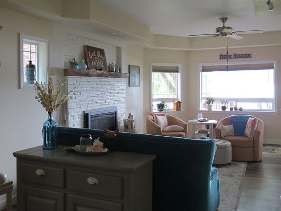 Reduced for quick sale! 50' of frontage with a great sandy beach. 4 bedroom, 2 bathrooms plus jacuzzi tub & wine room. This immaculate home has natural gas and 2 gas fireplaces. In 2017, all appliances, central heat and air, replaced. Excellent landscaping, large lake side deck. Daylight basement finished in 2017 to include additional bedroom suite plus laundry room and storage room. Home has new carpet in bedrooms and new luxury vinyl plank flooring. Easy access from Hwy 395. Great Waterfront Deal!