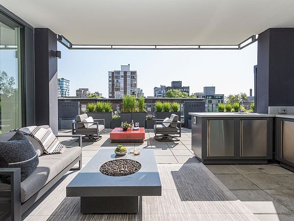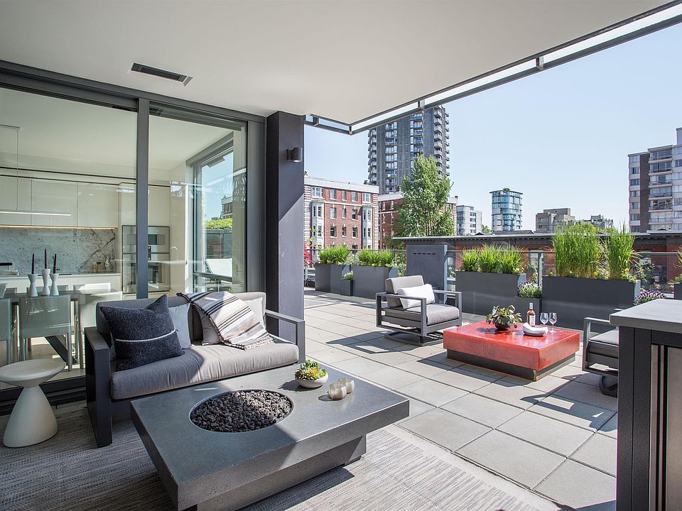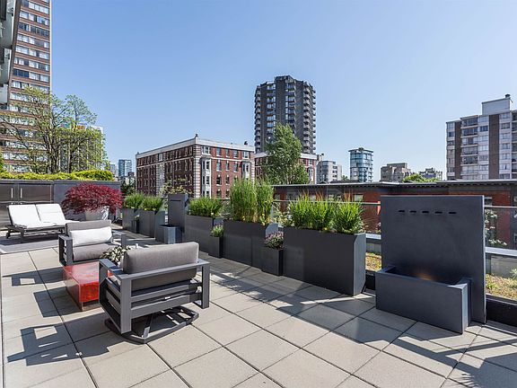 Sensational terrace residence @ The Jervis. A collaboration w/ Intracorp & Inform Interiors. This home enjoys a 1,252 sf interior & a remarkable 1,120 sf of private outdoor for a COMBINED 2,372 sf of seamless indoor & outdoor living. The S/W terrace is furnished with/ a kitchen, irrigated landscaping, a fire pit, storage & pergola. The kitchen is appointed w/ TLK cabinets, Bianco Statuario backsplash, Gaggenau appliances & walk-in pantry. 2 full bthrms are featured, clad in marble tile, Nuheat floors & appointed w/ Flaminia, Duravit & Gessi fixtures. 2 pkg. stalls w/ an EV charging station, a private sto. rm. & sto. locker is incl—amenities incl. concierge & fitness. The Jervis is known for its meticulous care & is within a 5 min walk to Sunset Beach w/ nearby cafes and shops—a rare find.