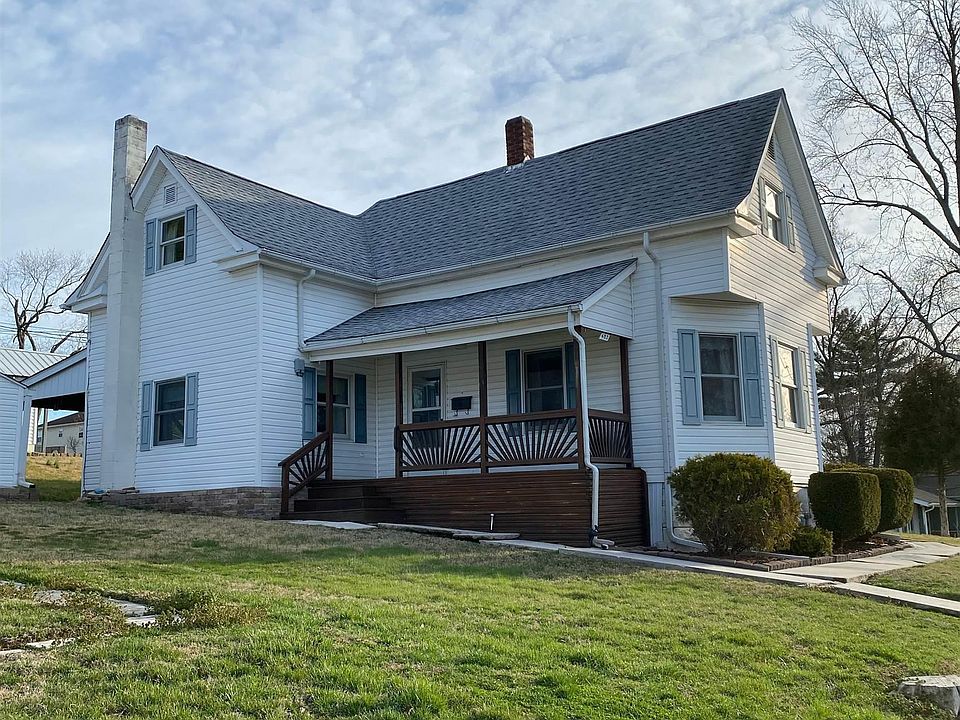 Charming 3 BR, Bath & 1/2, 1.5 story home with 1800 sq ft! Lovely oak kitchen includes updated appliances, beautiful countertop w molded sink, 1 BR and bath on main level, and 2 BRs and half bath on upper level. Plenty of space for comfortable family living!! Lg outside area includes a covered porch, storage building, and a 2-car detached garage with carport. Very large parking area ideal for RV or boat storage. Walking distance to elementary school! 100% financing available to qualified buyers!! Call for information!