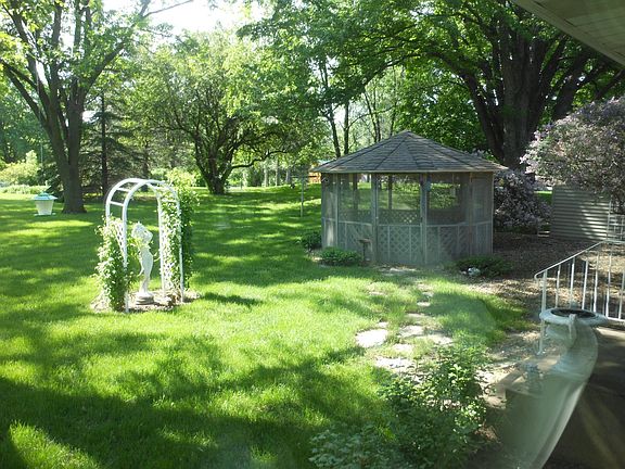 Great property with everything you need on one level, 3 bedrooms. Full bath with with separate shower & tub, living room with woodburning fireplace and beautiful view of private backyard. Kitchen features double oven, cherry cupboards, beamed ceiling open to dining room. 3 bedrooms on one level. Main floor laundry and attached 2 car garage. Finished basement has family room with fireplace, 3/4 bath and workshop area. Hot water heat, is very clean plus CA. 1 acre lot also has storage shed and a gazebo w/ electricity & music to it.