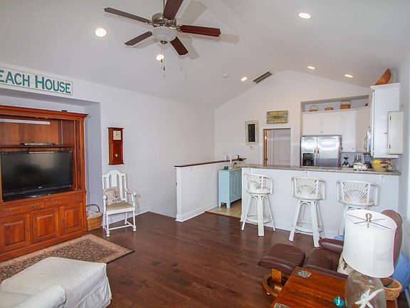 Townhouse has unattached walls that are connected by the ground level storage units. Home has ocean and sound views with metal roof, engineered wood floor in the great room, tile in the kitchen and all three full baths. Tiled shower next to the kitchen with granite counter tops and stainless steel appliances. Mandalay Bay has a deeded beach access just across the street. It also has community pool and a community day dock. Home has two Master Bedrooms on second floor. The home has three storage rooms on the ground floor. and comes partially furnished. Seller is a licensed real estate agent.