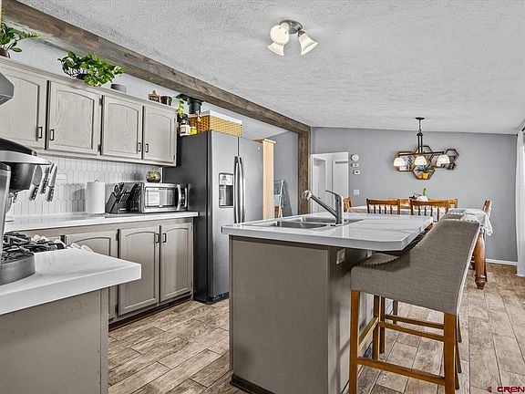 Experience the peace and serenity of your very own 5-acre retreat, complete with a backyard paradise. This property has been beautifully updated with wood grain tile, paint, stainless steel appliances, and a newer roof to provide you with the ultimate comfort. The split floor plan includes carpeting in both guest rooms while the primary suite boasts tile flooring, a garden tub, double sinks, and a walk-in closet. Located less than a mile from downtown Montrose, you'll enjoy all the benefits of country living without any of the HOA or Covenants. Plus, the backyard sprinkler system makes maintenance a breeze. Bring your furry and feathered friends along for the ride as this property offers ample parking, several outbuildings (one with power) and three shares of irrigation water. This county oasis is perfect for those looking to get away from it all with the convenience of being mere minutes to schools, shopping and restaurants.
