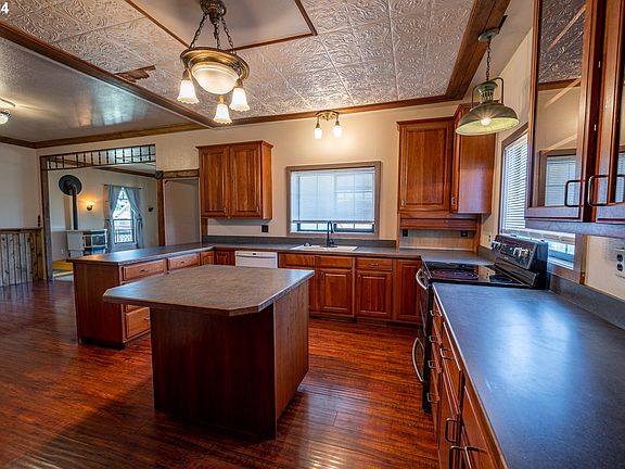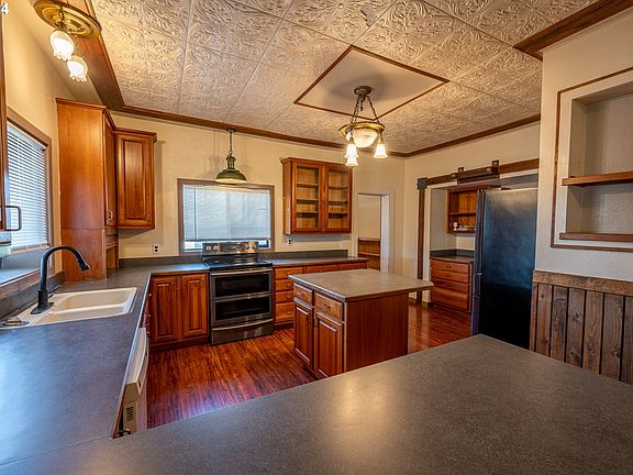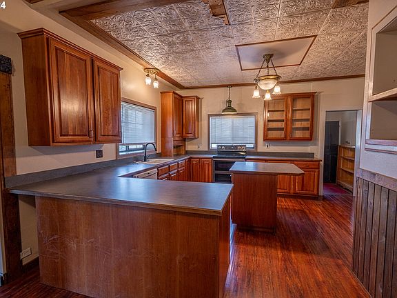 This classic home has so much charm and room to spread out. Situated on a fenced corner lot, this classic home offers three interior bedrooms, two and half baths, and a guest suite with a dedicated entrance and full bathroom. The generously sized living room has a cozy pellet stove for chilly nights. In the kitchen you will find plenty of storage and counter space, a center island, with all appliances included. The dedicated laundry room provides additional storage space and includes the stackable washer and dryer. The inviting wrap around covered porch is the perfect place to enjoy your morning coffee or watch the sunset. Many updates were made in 2019 including a new roof, exterior paint, and electrical panel. For the gardener, the yard includes raised beds and a shed with drive in access via the large gate. This property is a must see to appreciate.