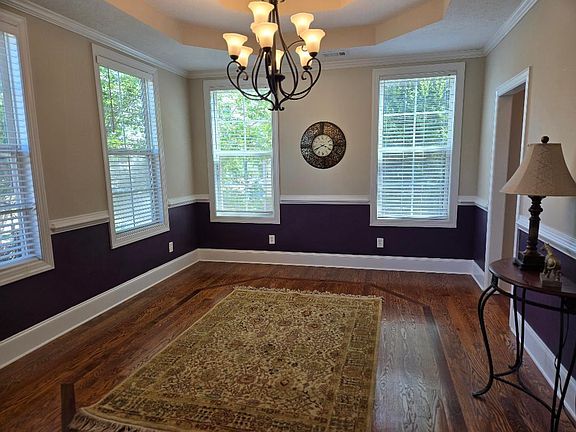 Located in sought after Crawford Creek subdivision, this original model home with a brand new roof offers three levels of living space with 6 bedrooms, 4 full and one-half baths covering 6149 sq. ft. and has tons of upgrades. Each level has its own serviced HVAC unit. Upon entering you are greeted by a formal dining room with inlaid hardwood floors leading to the gourmet kitchen with granite counters, custom cabinets, tiled backsplash, pot filler over a gas cook top and stainless appliances. Overlooking the bar height counter, you'll view the open concept Great Room with vaulted ceilings and a magnificent stack stone gas fireplace adorned by custom built-ins. Step out through the French doors onto the large tiled screened-in porch to enjoy the serene views of the fenced backyard and grilling deck. On the main floor is the majestic owner's suite with new carpet, vaulted ceilings and a second see-through gas fireplace leading to the luxury ensuite bath with double granite countertop sinks, wall sized mirrors, ornate soaking tub and opulent tiled rainfall open shower. A freshly painted loft area and 3 additional bedrooms and 2 full baths grace the fully carpeted second floor. As a treat, an enormous 5th bedroom that can double as a family or entertainment room. There are walk-in closets throughout all bedrooms and ceiling fans can be found in every room to ensure comfort. 2 in. faux wood blinds on all windows throughout the home. Stairs from the 1st floor hall lead to the 2,200 sq. ft. walkout basement with new laminate floors and its own separate entrance to a covered patio. You will find another bedroom with one full bath, a mini kitchen, office and walk-in pantry. To top it off are archways and an open concept Great Room with French doors that lead to a huge entertainment/family room. Endless possibilities for an In-law apartment, traveling nurse or student rental. Let your imagination run wild. Amenities include Clubhouse, scenic walking trails, tennis, pickle ball and basketball courts, a playground, and two stunning pools for family fun or lap swimming. Conveniently located near daycare facilities, schools, shopping centers, restaurants, major interstate routes, and Fort Eisenhower, this exceptional home offers the perfect blend of comfort, elegance, and convenience. You will be amazed.