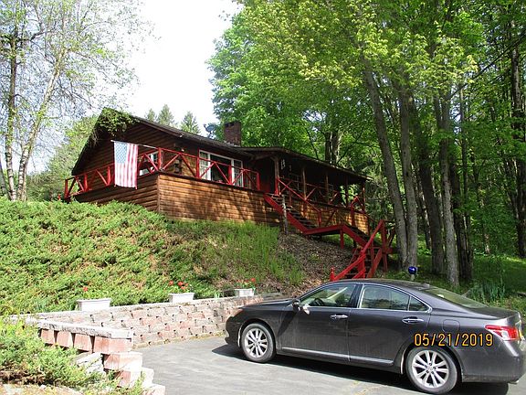 This amazing one owner home shows the love of ownership. Beautiful log home sitting on 11 acres with large park like lawn and woods with paths to enjoy the property. Oversized garage with log siding and a shed near a garden spot and blueberry bushes. Home has open floor plan with 3 bedrooms and a bath. Abundant storage and room to expand if needed. Covered full length front porch and open deck on the side of the home. Large full basement. Don't miss this one - it won't last long.