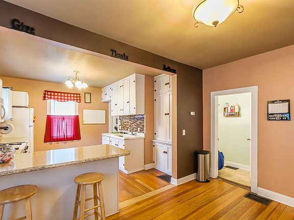 Updated 3 bedroom, 1 bathroom home with fenced in backyard close to parks and school. Open kitchen and dining area, wood floors, and an awesome 3-season porch. Home includes kitchen appliances and washer and dryer. Main level bedroom doesn't have a closet but includes a wardrobe closet. Roof painted in October 2016. Seller offering $4,000 closing credit to buyer for a new furnace. Great starter home!