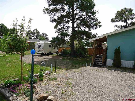 Wow, another amazing manufactured home. This home is on a double lot and has fencing in the rear with space for an RV or other toys in the front. The house has many upgrades including 6" walls, newer high end appliances, remodeled master bath with tile flooring, nice sheet rock walls, upgraded kitchen cabinets and two decks. This house is so solid you feel like you are in a stick built home. The owners have taken such good care it is almost like new. The back yard is nicely landscaped with a patio area and raised beds for a vegetable garden. There are also three separate outdoor storage units in the back yard and a graveled area to park your RV or toys. Close to hospitals, restaurants, and shopping. Come and enjoy all Pagosa has to offer. You have to see this place.