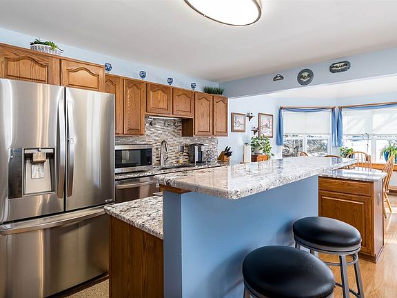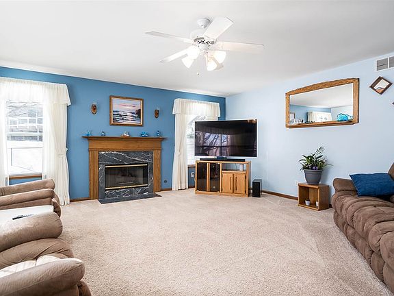 Beautiful ranch with 3 bedrooms, 2 1/2 baths and an office along with a large living room, dining room and kitchen with stainless steel appliances and granite countertop all on the main floor. Lower level is for fun including a family room, large game room with a pool table and shuffle board table and a bar. Sump pump has a battery backup. Includes a heated 3 car garage and a large 10x14 garden shed and 15'x30' stamped concrete patio. All this and more with a small town atmosphere at no extra charge on a quiet cul de sac. Roof is 6 years old and has leaffilter gutter protection. Also includes a home warranty.