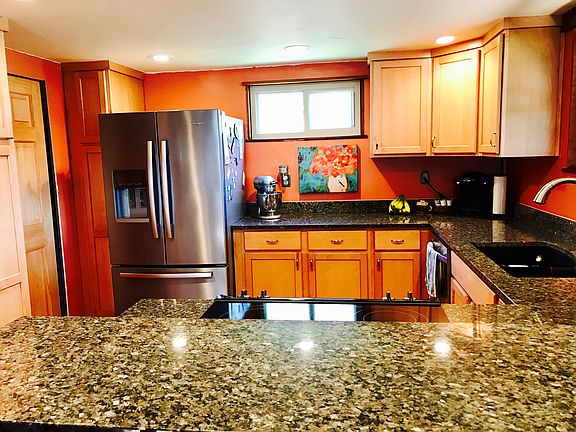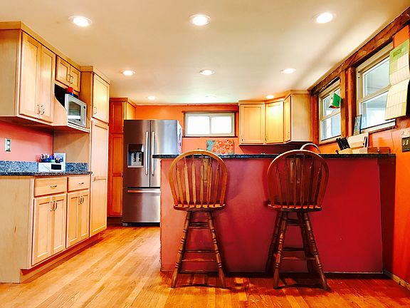Situated at the end of a cul de sac in a quiet neighborhood, this home boasts a private yet convenient location. Many updates have been made including renovated kitchen with granite countertops, stainless steel appliances and recessed lighting. The full bath has also been remodeled with porcelain tile and a beautiful vanity with granite top. All downstairs windows have been replaced, the roof has been replaced in the past 5 years and a split level heating and air system was installed to compliment the large wood stove.