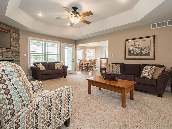 THIS IS IT!!! Check out this three bedroom, two bath ranch featuring a full basement and located in the very popular Oak Acres subdivision on a corner lot at the end of the street providing lots of privacy!!!! Awesome split bedroom floor plan features living room with gas fireplace, supersized kitchen equipped with all appliances & beautiful Knotty Alder custom cabinets plus dining area-even a convenient space for your desk. Spacious master suite features coffer ceiling - master bath with his & her closets, tub & walk-in shower. Detached 20 x 20 workshop - ideal for the handyman!! Enjoy the comforts of the covered patio overlooking the adjacent woods with an abundance of wildlife!! MOTIVATED SELLER-BRING AN OFFER!!